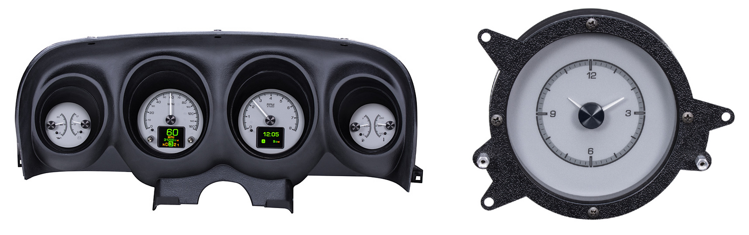 1969 and ’70 Mustangs deserve new instrumentation as much as the next car, so take a look at this drop-in system. It makes use of your stock instrument housing and bezel, and includes new clear lenses. Take your pick from black or Silver face styling, and enjoy a wealth of information displayed by the two, full color TFT message centers! Don’t forget to add the matching clock for the passenger side!