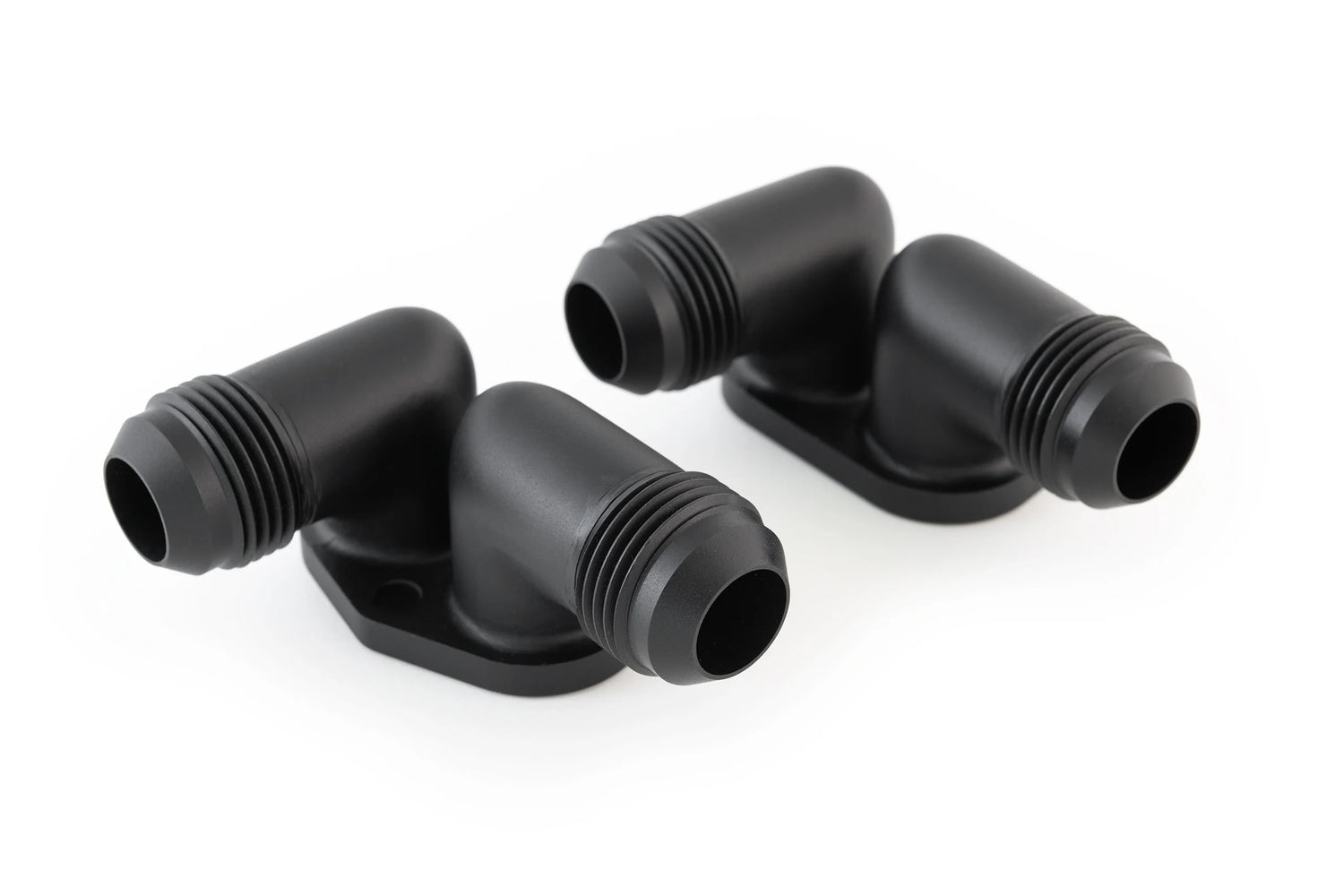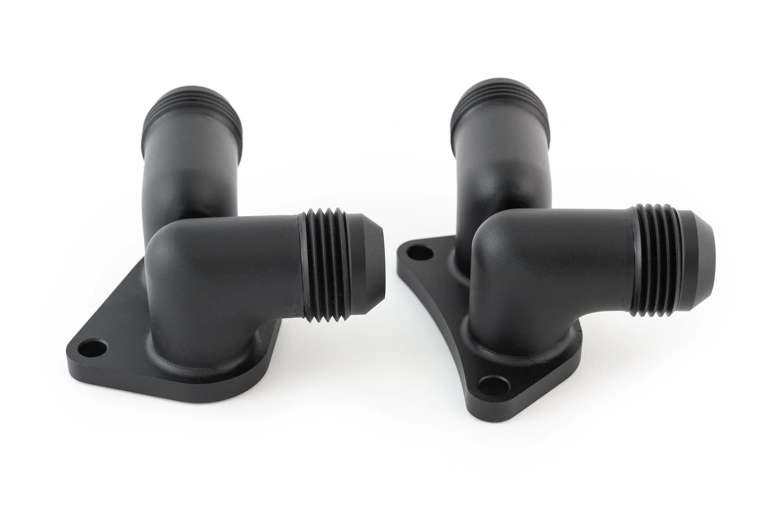 These CNC'd 6061 aluminum blocks allow you to eliminate the factory blower coolant manifold on the LT4 supercharger and feed each intercooler brick individually. The blocks convert the inlet and outlet of each brick to a 12 AN fitting allowing end users to run significantly larger lines for the system than stock. They come anodized black.