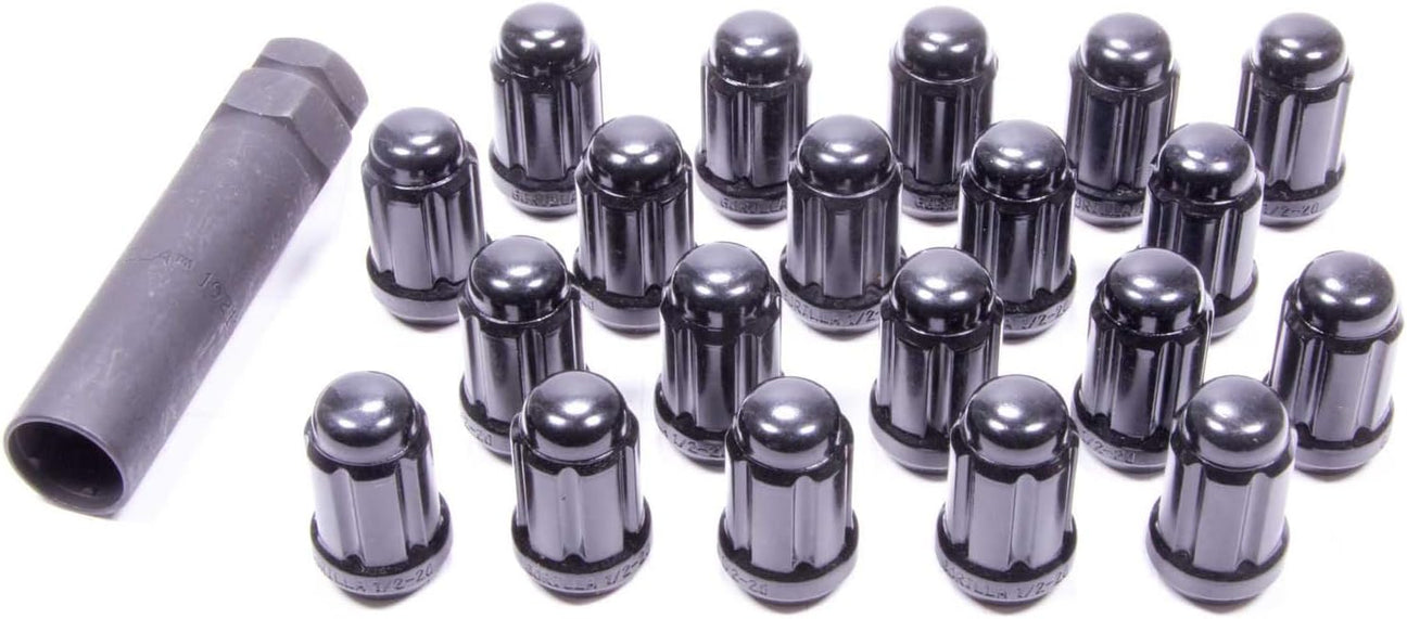 Black 1/2-20 Spline Drive Lug Nuts by Gorilla - Set of 20 with key
