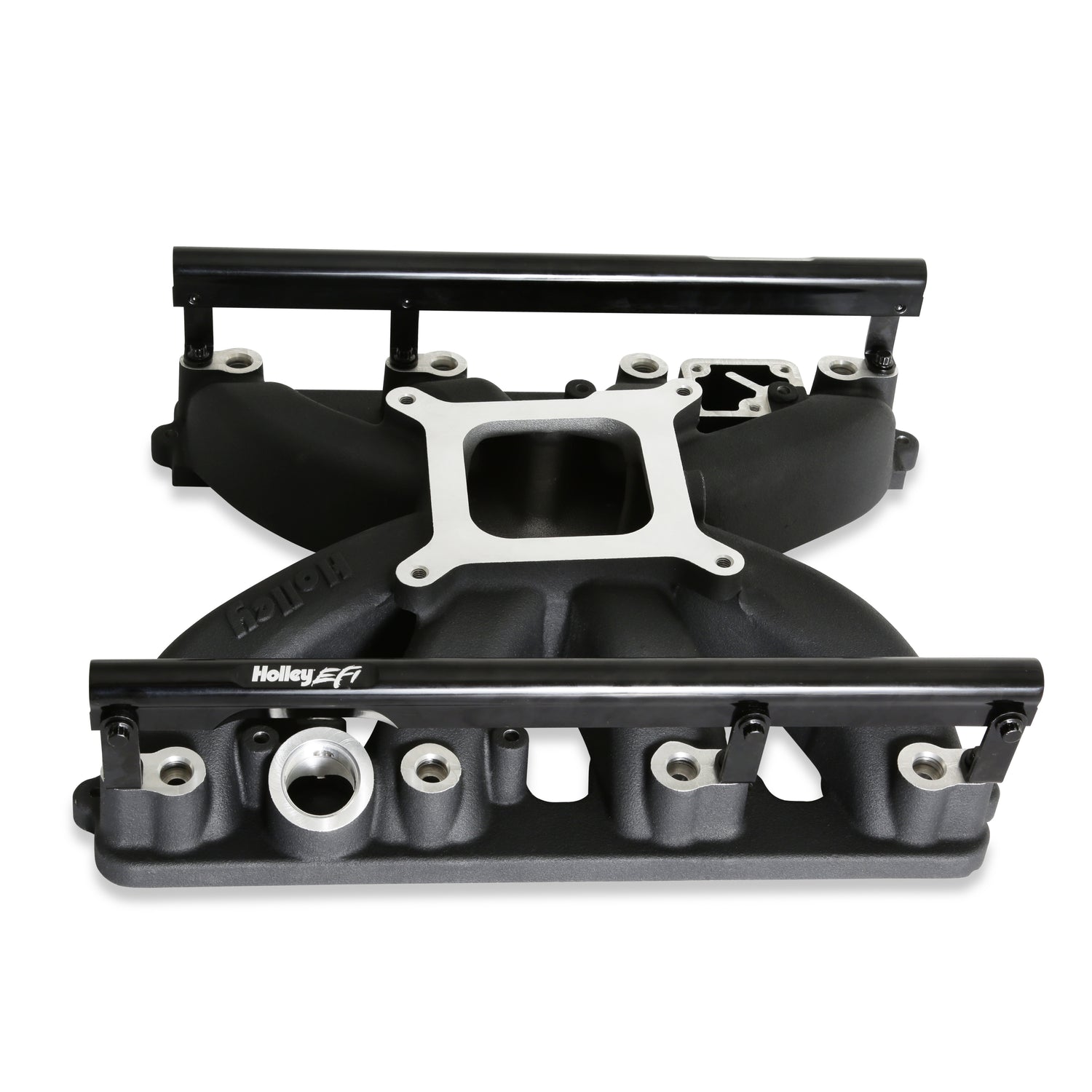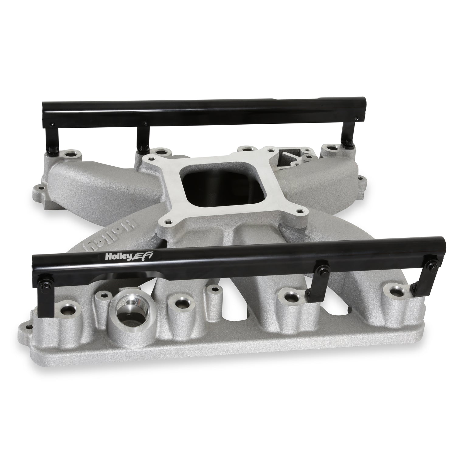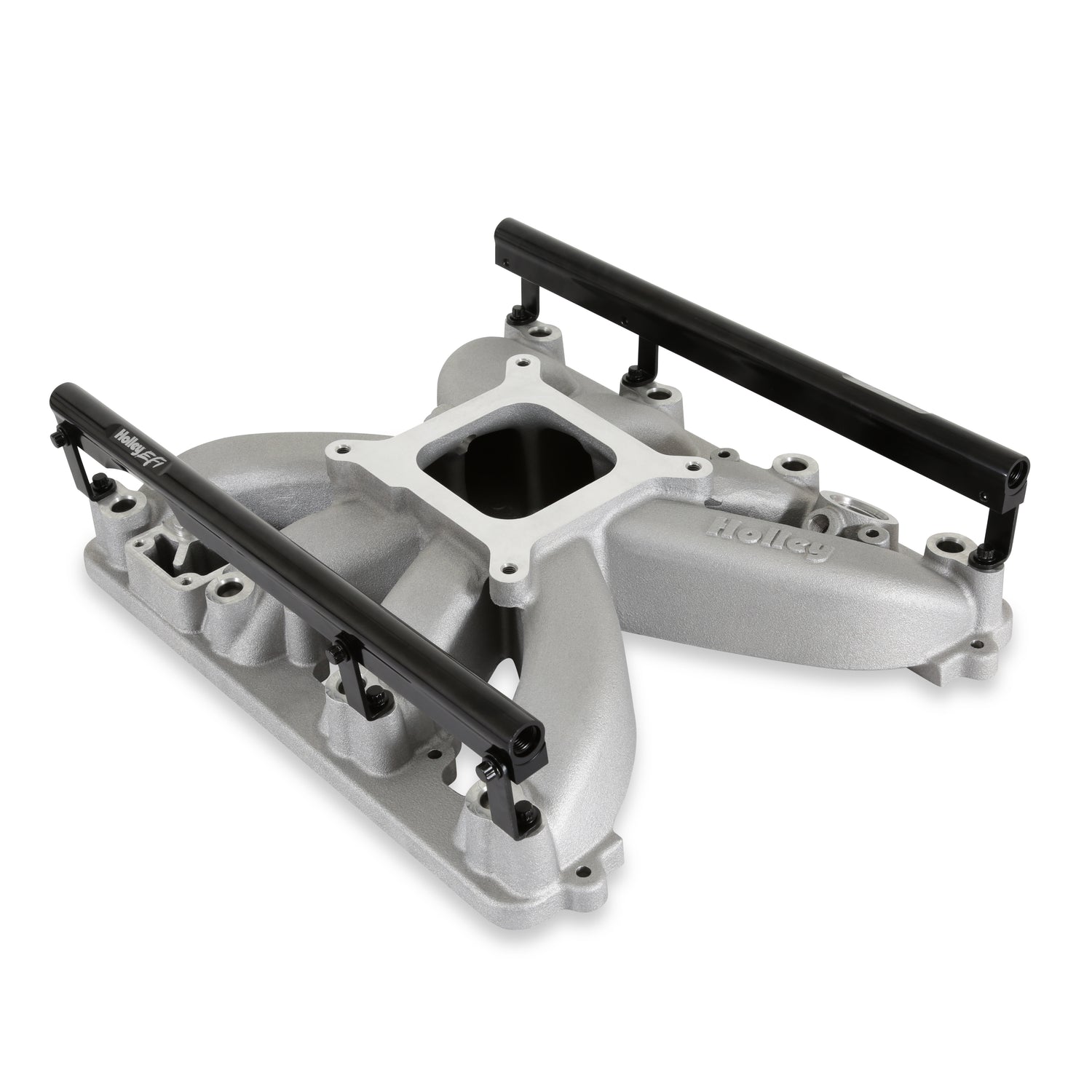 These new single-plane intake manifold kits are designed for 2009-Current 5.7-liter, 2005-2010 6.1-liter, and 2011-Current 6.4-liter Chrysler Gen III Hemi engines. They provide maximum hood clearance combined with plenum and runner geometry that provide a broad RPM powerband for high-performance street/strip engine applications to a maximum engine speed of 7500 RPM. The isolated design of the air/fuel passages helps to increase charge air density and performance. 300-930 and 300-930BK are designed for 4150 type throttle valves. Included are billet fuel rails along with mounting brackets for either Bosch EV-1 type fuel injectors or most Gen III Hemi OEM injectors.