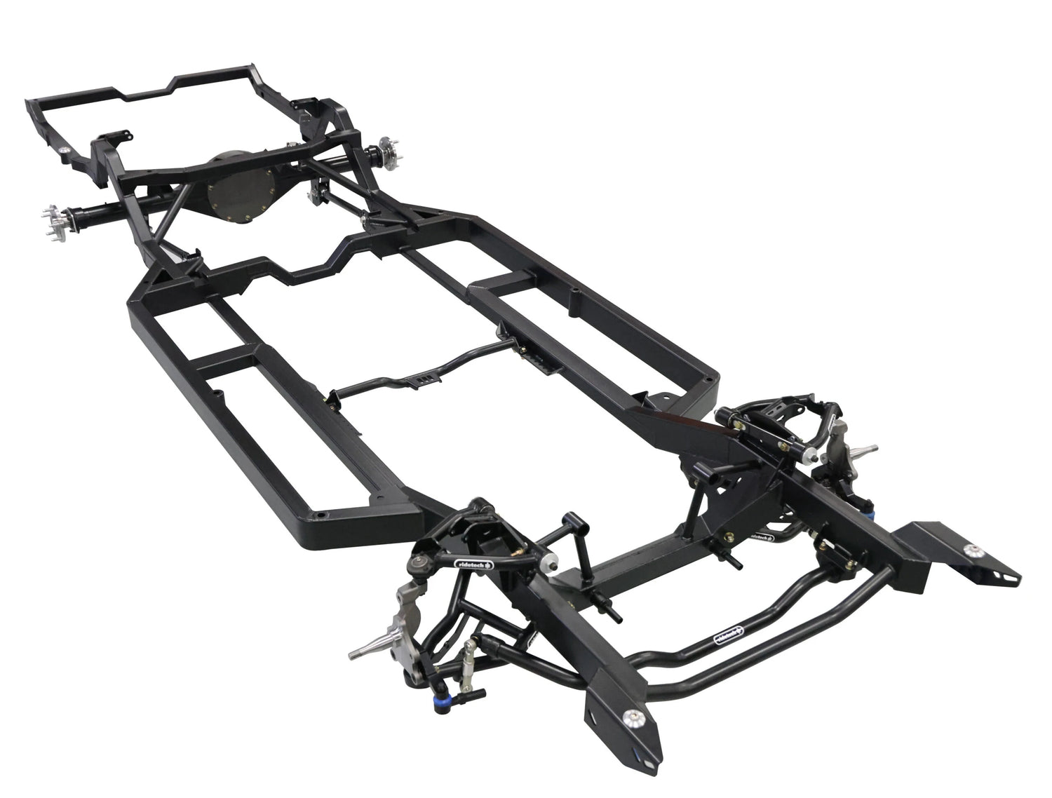 Accommodates small/big block Chevy, LS, & Gen V LT engines. Adjustable transmission crossmember accepts popular popular manuals & automatics