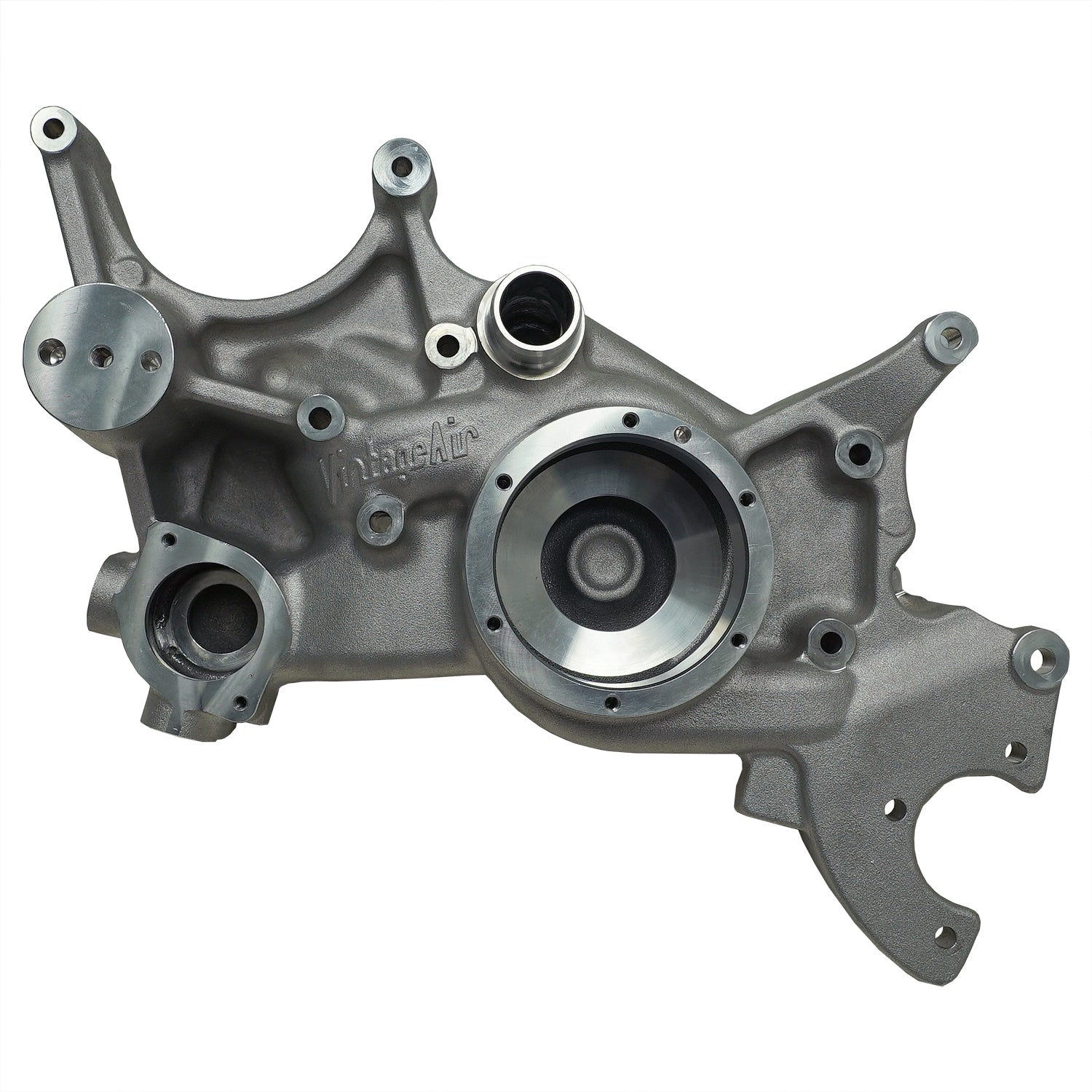 - USA made, precision cast A356-T6 alloy, water pump housing with integrated compressor, alternator and power steering pump mounting points.